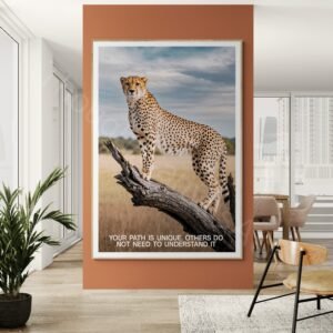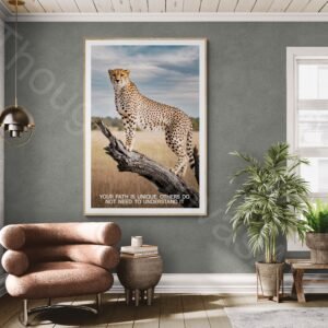 Unique Path Cheetah Art Print: Inspirational Quote Wildlife Digital Download, Savannah Tree Branch Decor (Digital Download)
