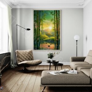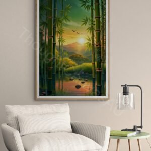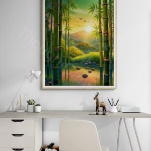 Serene Bamboo Forest | Digital Painting | Sunrise Landscape | Peaceful Nature | Wall Art | Instant Download