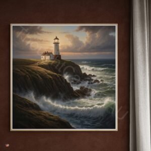 Weathered Lighthouse Art | Realistic Seascape, Ocean Waves Digital Print, Digital Download | Instant Download
